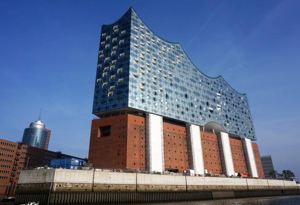Die Elbphilharmonie ist das wohl bekannteste Beispiel für den Brückenschlag zwischen Tradition und Moderne. Entworfen wurde das Konzerthaus von den Schweizer Architekten Herzog & de Meuron. Die Verbindung aus roten Backsteinmauern und filigranem Glasbau macht das Konzerthaus zum Inbegriff des Hamburger Selbstverständnisses. Der ehemalige Kaispeicher A wurde bis gegen Ende des letzten Jahrhunderts als Lagerhaus u.a. für Tee, Tabak, Kakaobohnen genutzt. Er bildet das Fundament für 200.000 Tonnen Kultur: Die Glasfassade verwandelt den aufgesetzten Baukörper der Philharmonie mit 110m Gesamthöhe in einen riesigen Kristall mit immer wieder neuem Erscheinungsbild. Mit seinen in Teilbereichen gekrümmten und eingeschnittenen Glaspaneelen fängt er die Reflexionen des Himmels, des Wassers und der Stadt ein.